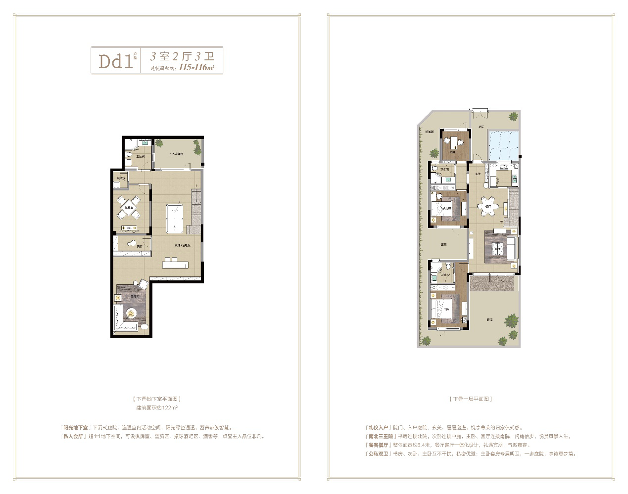 其中,精装中式叠院以上庭下院、两两相叠的创新形制,满足中国人对于庭院生活的向往。下叠多重庭院、阳光地下室,有天有地,悦享闲情院落生活;上叠便捷电梯、超大面宽、首创空中庭院设计,楼上亦能养花饲草,悠享更多阳光绿意。
